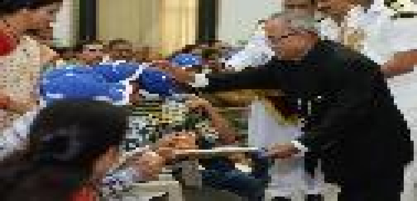 The President of India, Shri Pranab Mukherjee Interacting with the Physically and Mentally abled Children of President's Estate on the Occasion of India's 67th Independence Day at Rashtrpati Bhavan Auditorium on Aug 15, 2013