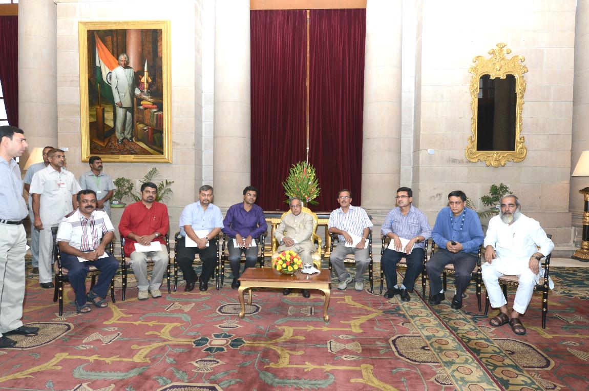 The President of India, Shri Pranab Mukherjee Interacting with Media Persons at the reception, hosted by him at Rashtrapati Bhavan on July 24, 2013