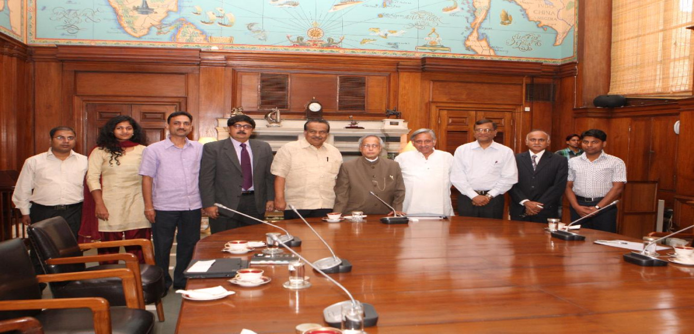 The President of India, Shri Pranab Mukherjee Meeting with A.T. Mondal Speaker Meghalaya Legislative Assembly along with a delegation of Ministers & MLAs from Meghalaya on 01 May 2013