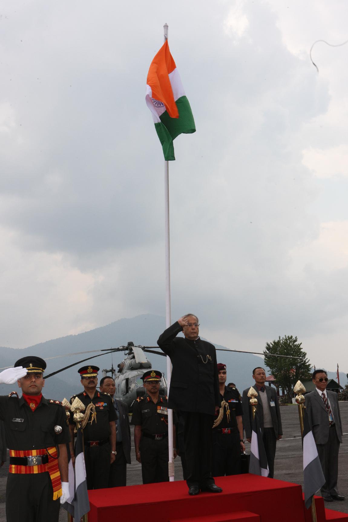 The President of India, Shri Pranab Mukherjee Inspecting Guard of Honor & Reception at Gangtok Helipad on April 16, 2013