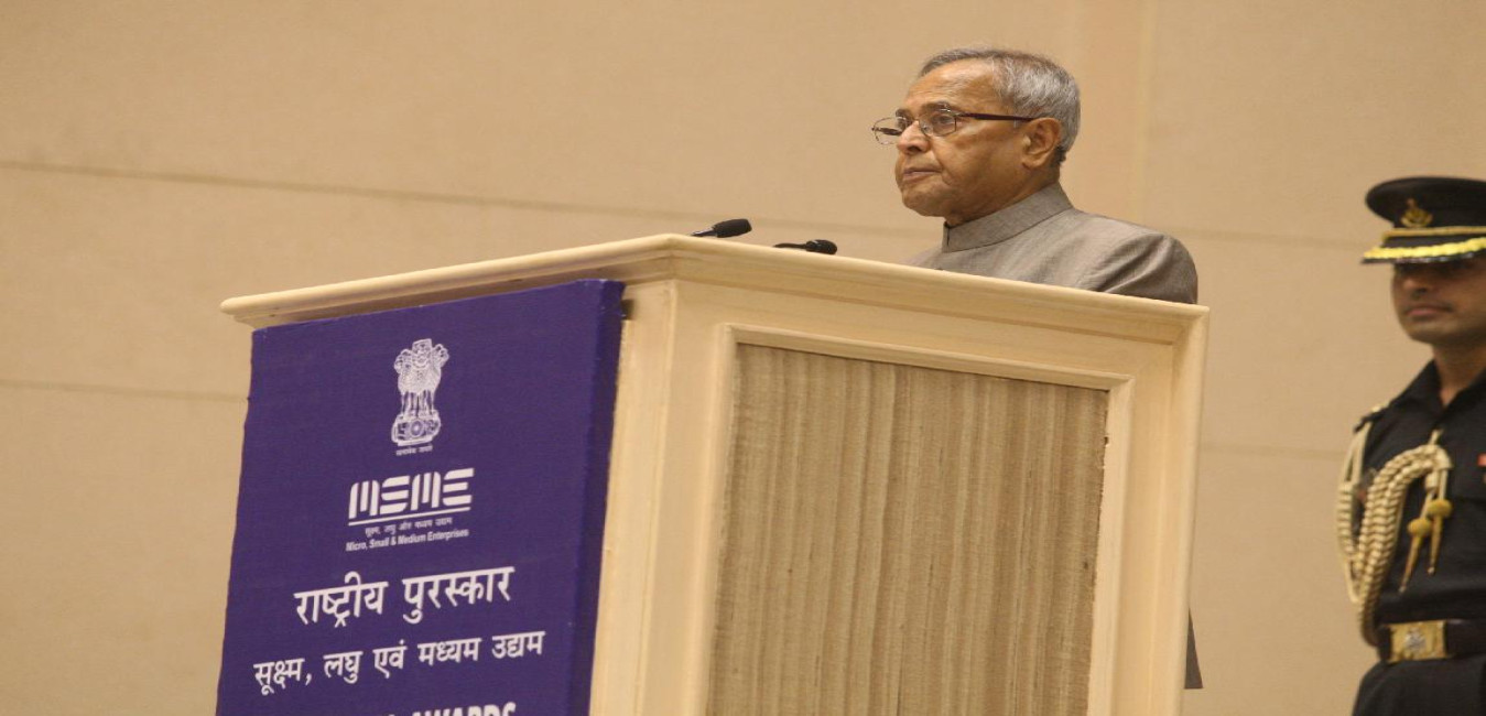 The President of India, Shri Pranab Mukherjee Presenting the National Awards for Outstanding Entrepreneurship,Product Quality and R&D to the Entrepreneurs from Micro Small & Medium Enterprises, Khadi & Coir Sectors at Vigyan Bhavan on April 03, 2013