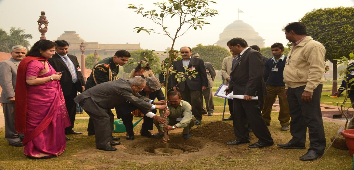 The President of India, Shri Pranab Mukherjee Planting a Sapling at Mughal Garden on Dec 11, 2012