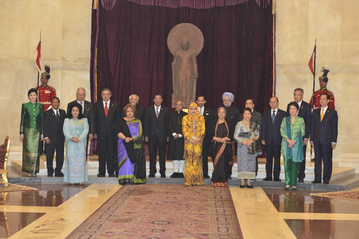 The President of India, Shri Pranab Mukherjee Posing for a Group Photograph with Delegation of ASEAN-India Special Commemorative Summit (Call on & Farewell) on Dec 20, 2012