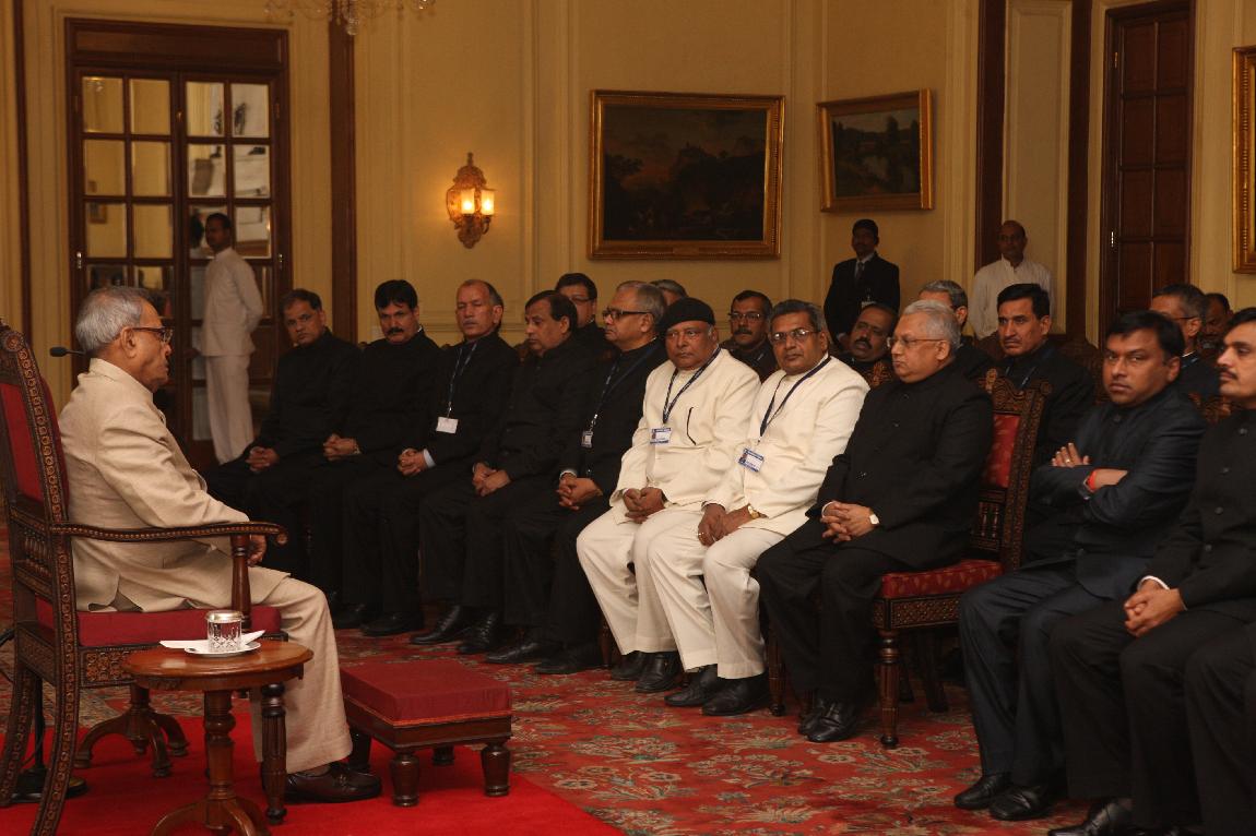 The President of India, Shri Pranab Mukherjee meeting with Civil Service Officers promoted to IAS from Lal Bahadur Shastri National Academy Mussoorie on November 17, 2012