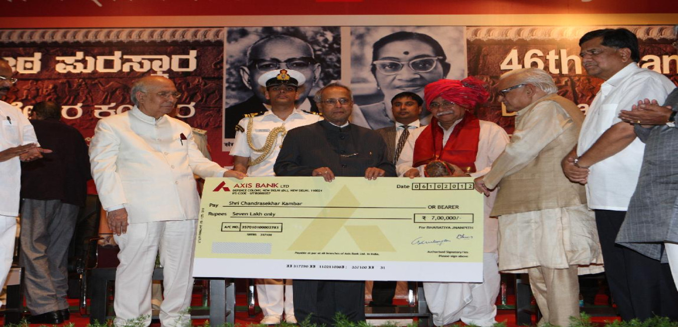 The President of India, Shri Pranab Mukherjee Presenting Jnanpith Award on October 11, 2012