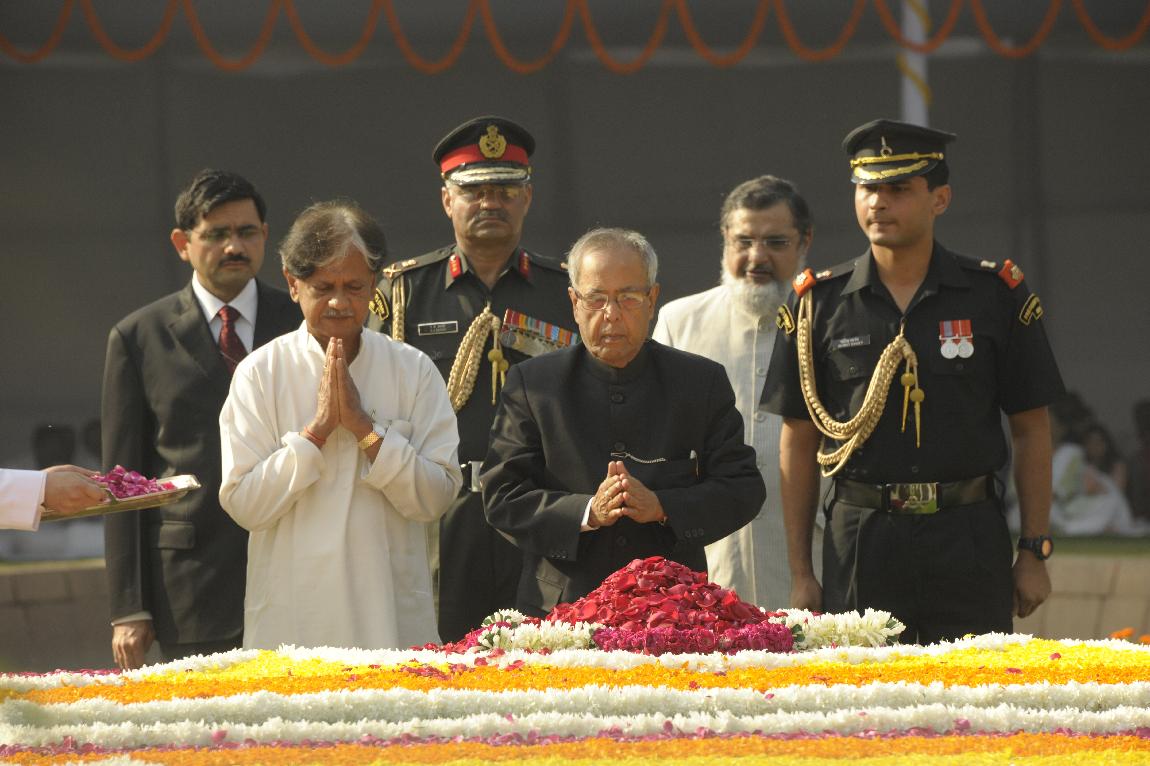 The President of India, Shri Pranab Mukherjee Paying Homage at The Samadhi of Mahatma Gandhi on the Occasion of his 143th Birth Anniversary at Rajghat on October 02, 2012