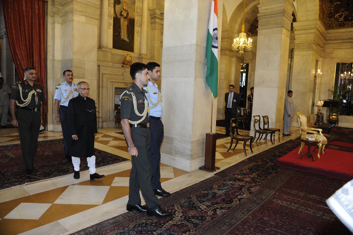 The President of India, Shri Pranab Mukherjee conducted in a procession to Central Lawn from Study on August 15, 2012