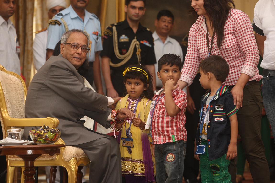 The President of India, Shri Pranab Mukherjee received Raksha Bandhan Greetings at Yellow Drawing Room on August 02, 2012