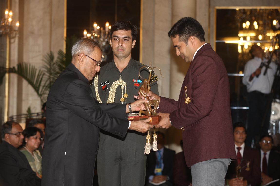 The President of India, Shri Pranab Mukherjee Presenting The Rajiv Gandhi Khel Ratna Award & Arjun Award on August 29, 2012