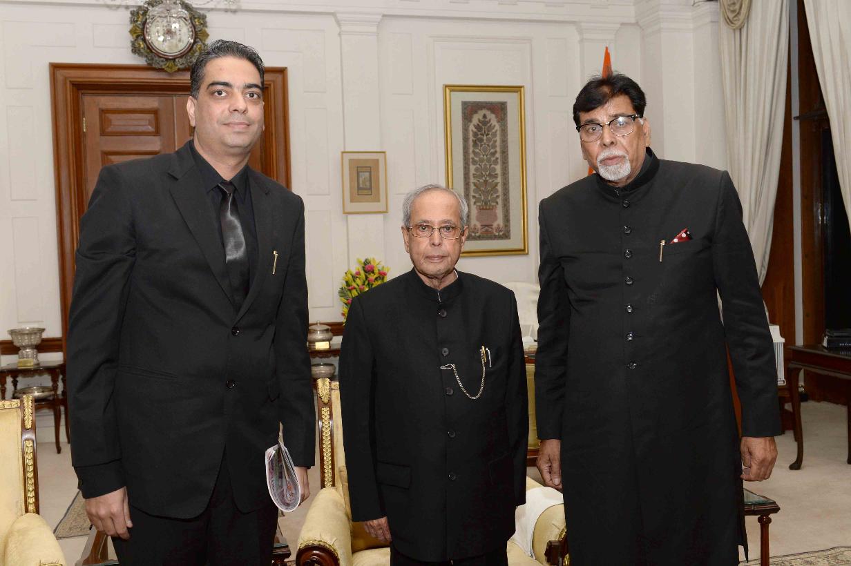 The President of India, Shri Pranab Mukherjee meeting with Shri Narendra Kumar Verma alongwith his son Shri Rohit Kumar Verma, at Rashtrapati Bhavan on April 04, 2017.