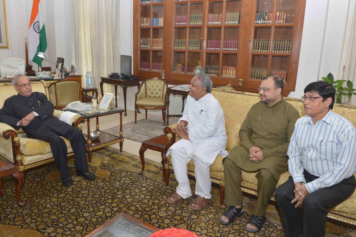 The President of India, Shri Pranab Mukherjee meeting with Shri Nepal Mahata, MLA alongwith Shri Sibsudhra Duttagupta and Shri Sunil Sarwat, at Rashtrapati Bhavan on July 21, 2017.