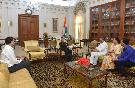 The President of India, Shri Pranab Mukherjee meeting with Smt. Justice (Retd) Gyan Sudha Mishra, former Judge, Supreme Court of India alongwith her daughter Ms. Unnati and nephew Shri Jaideep, at Rashtrapati Bhavan on July 20, 2017.