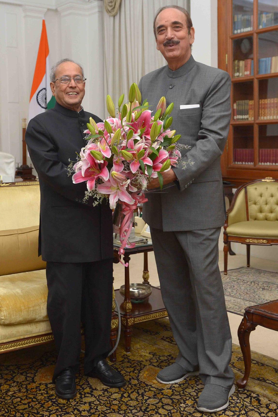 The President of India, Shri Pranab Mukherjee meeting with Shri Ghulam Nabi Azad, Leader of Opposition, Rajya Sabha, at Rashtrapati Bhavan on July 21, 2017.