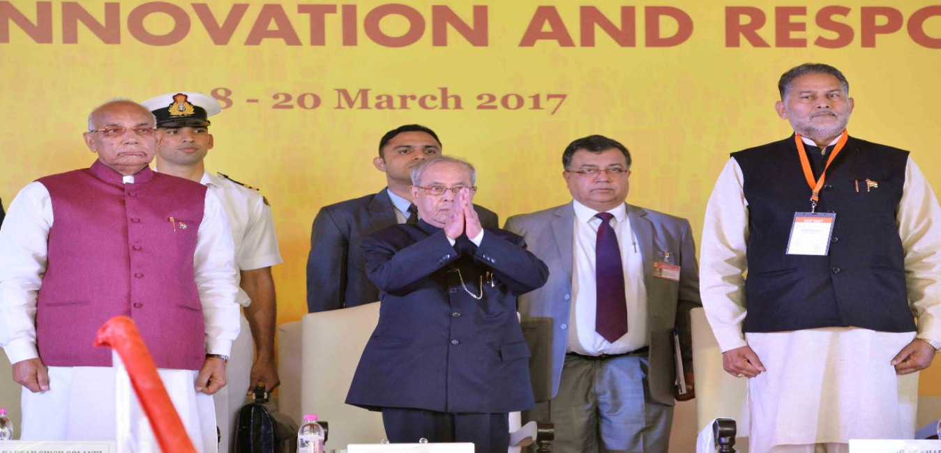 The President of India, Shri Pranab Mukherjee at the inauguration of International Conference on the theme of "Universities of the Future: Knowledge, Innovation and Responsibility , at O.P. Jindal Global University (JGU), Sonipat, in Haryana on March 18, 2017.