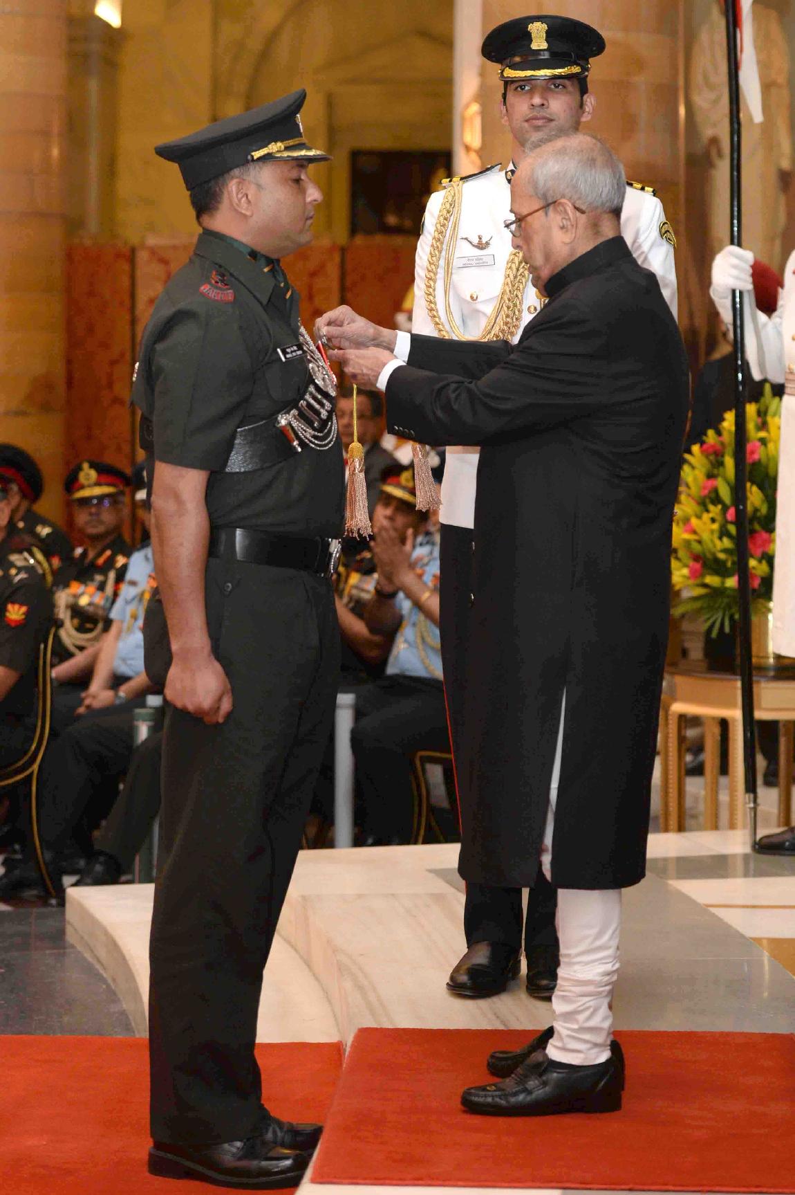 The President of India, Shri Pranab Mukherjee presenting the Gallantry Awards and Distinguished Service Decorations, at a Defence Investiture Ceremony, in Rashtrapati Bhavan on March 20, 2017.