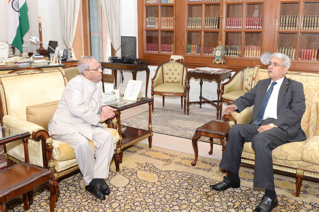 The President of India, Shri Pranab Mukherjee meeting with Shri Shashi Kant Sharma, Comptroller & Auditor General of India, at Rashtrapati Bhavan on March 20, 2017.