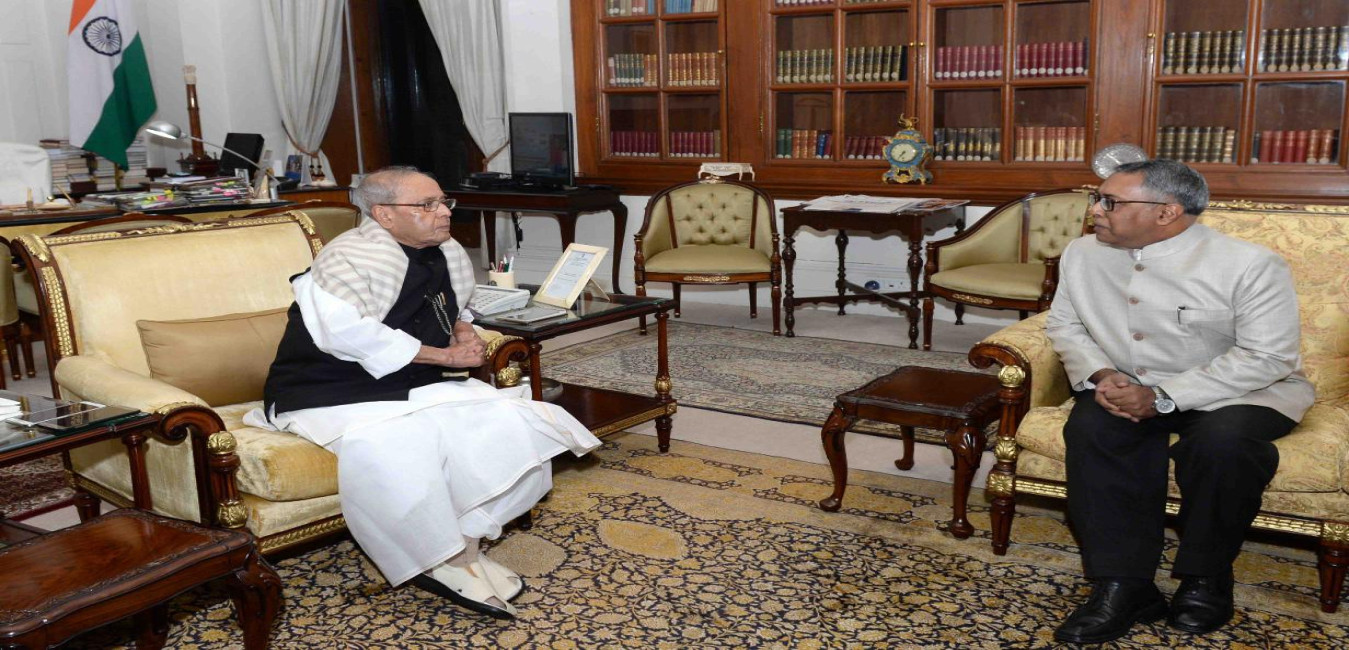 The President of India, Shri Pranab Mukherjee meeting with Shri Prabal Kumar Basu, at Rashtrapati Bhavan on March 10, 2017.