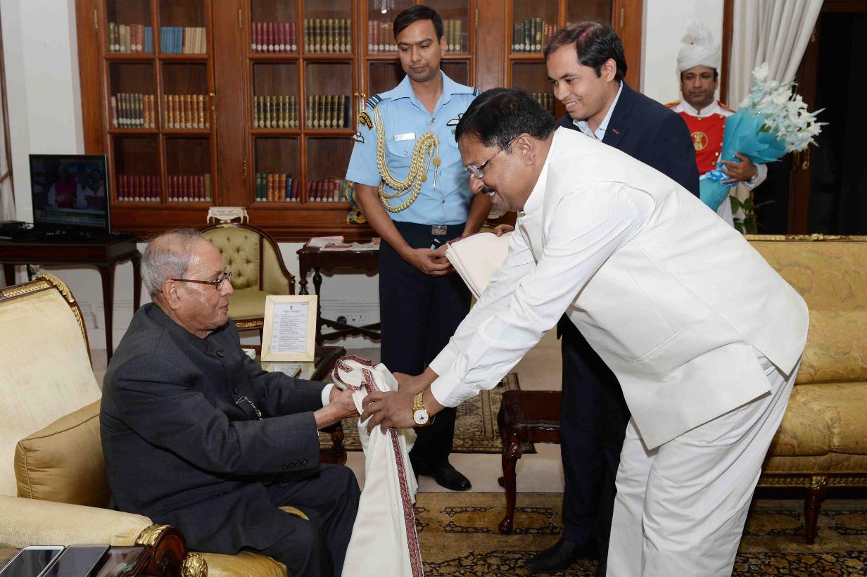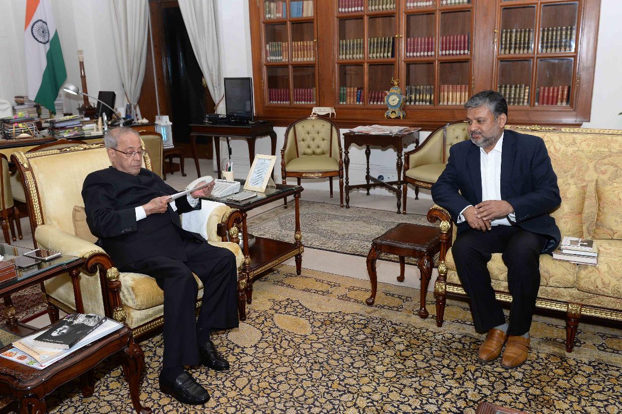 The President of India, Shri Pranab Mukherjee meeting with Smt. & Shri Srinjoy Chowdhury , at Rashtrapati Bhavan on March 10, 2017.