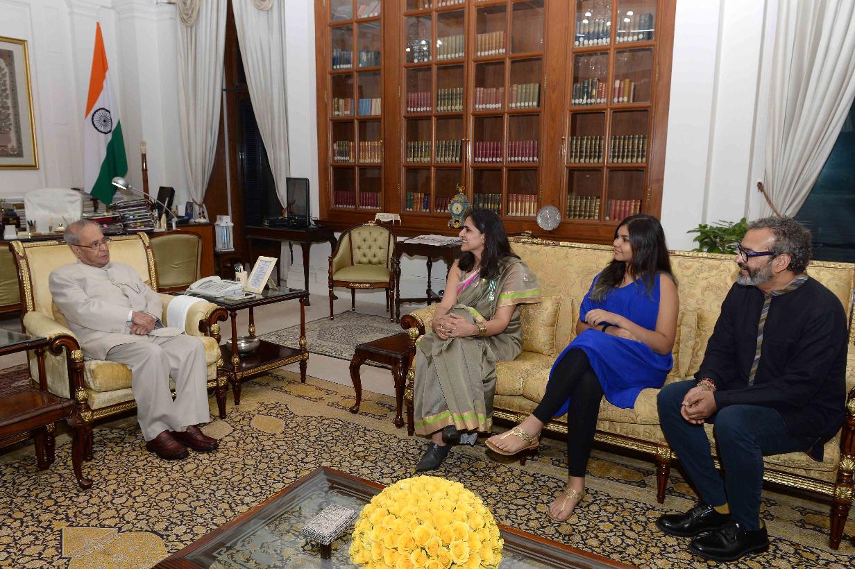 The President of India, Shri Pranab Mukherjee meeting with Shri Subodh Gupta and Smt. Bharti Kher, participants of In-Residence Programme for Artists, at Rashtrapati Bhavan on March 09, 2017.
