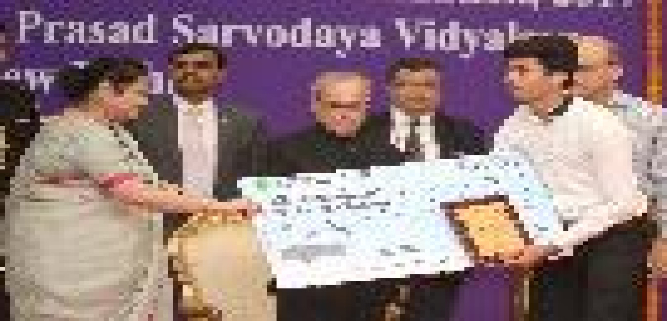 The President of India, Shri Pranab Mukherjee presenting the Pranab Mukherjee award and other award for Academic Excellence in CBSE Examination, 2017 to the students of Class XII of Dr. Rajendra Prasad Sarvodaya Vidyalaya, at Rashtrapati Bhavan Cultural Centre on July 19, 2017.