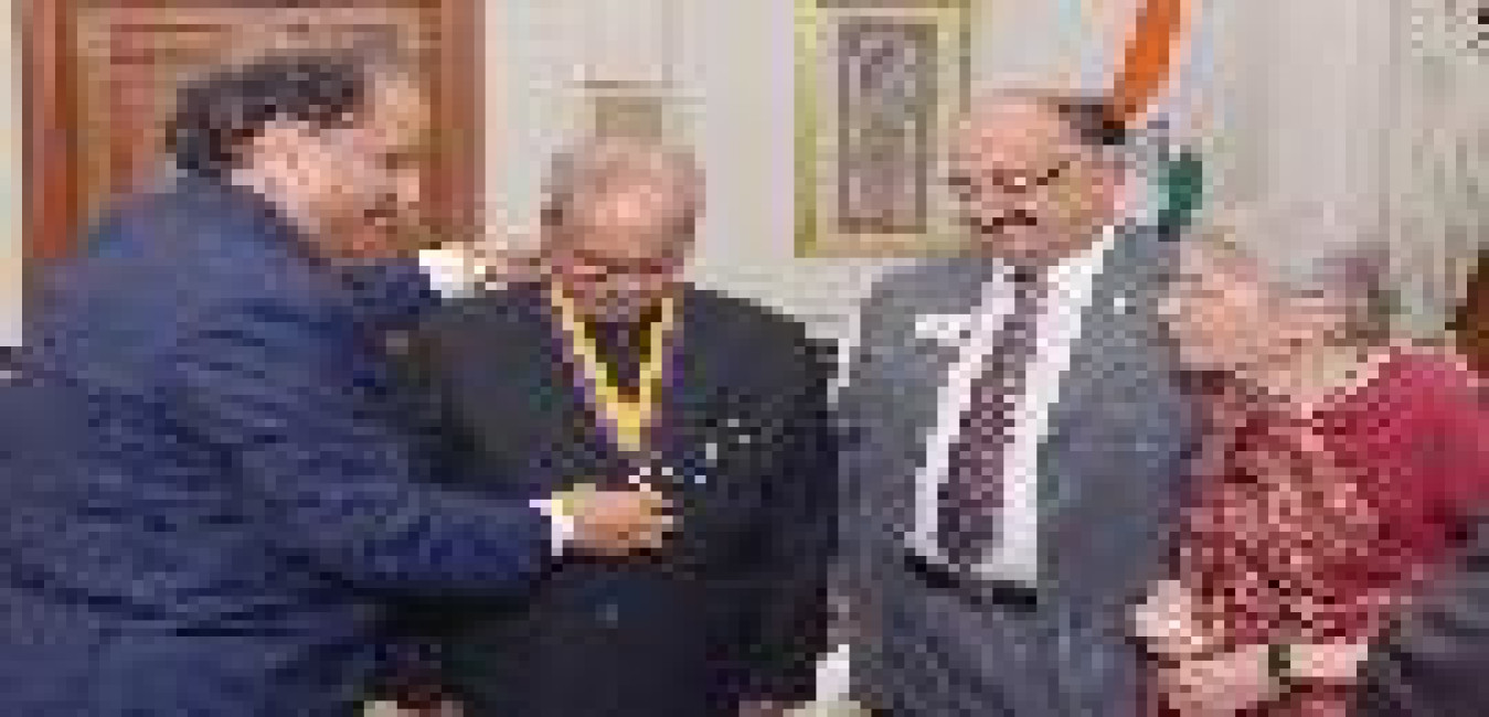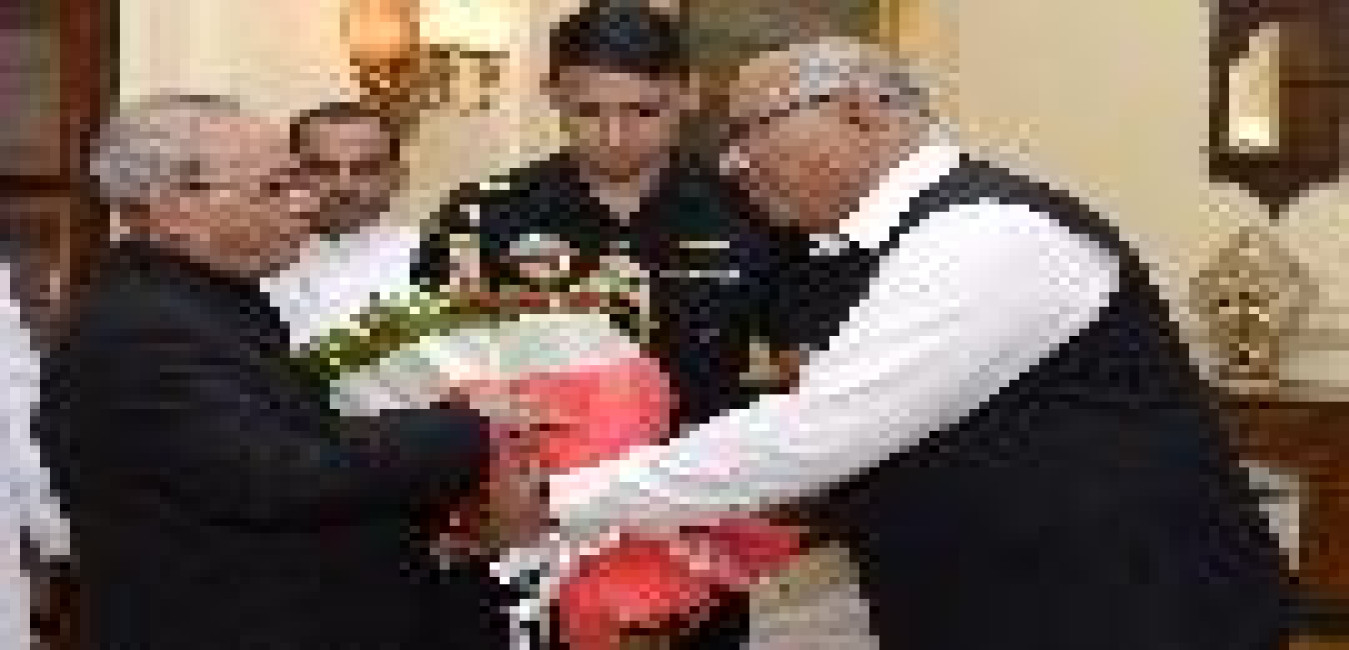 The President of India, Shri Pranab Mukherjee receiving the ''Maha Vastu Handbook'' from Dr. Khushdeep Bansal, Advisor & Research Scholar on ancient Indian Sciences with others, at Rashtrapati Bhavan on July 19, 2017.