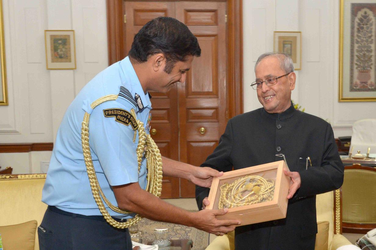 The President of India, Shri Pranab Mukherjee meeting with Gp. Capt. Sanjiv Sethi, Deputy Military Secretary to the President alongwith his family members, at Rashtrapati Bhavan on July 19, 2017.