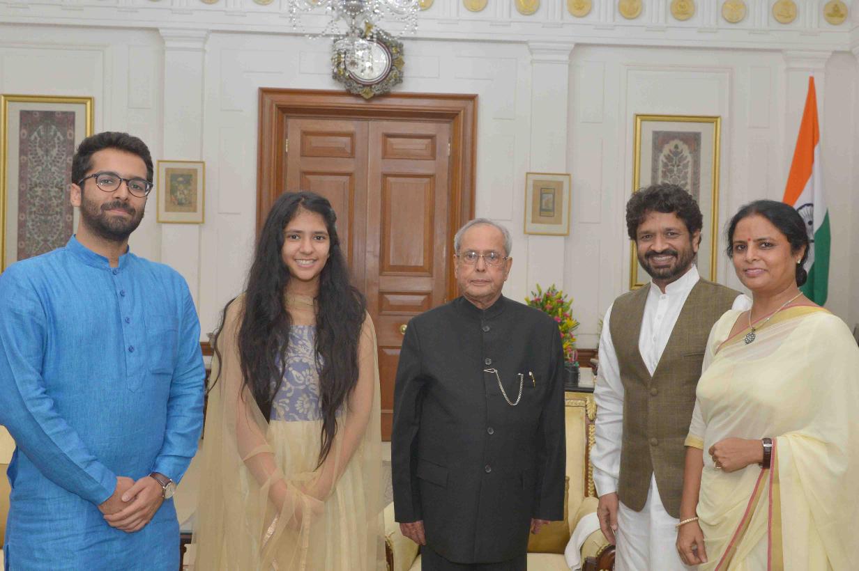 The President of India, Shri Pranab Mukherjee meeting with Smt. Pushpashri Thakur alongwith Smt. & Shri Chandan Kumar Basu and their daughter, at Rashtrapati Bhavan on July 18, 2017.