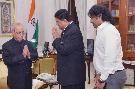 The President of India, Shri Pranab Mukherjee meeting with Dr. Mahendra Nath Pandey, Minister of State for Human Resource Development alongwith his family members, at Rashtrapati Bhavan on July 19, 2017.