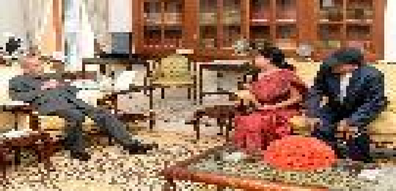 The President of India, Shri Pranab Mukherjee meeting with Smt. Usha Nandi and Shri P.K. Nandi from Silliguri, at Rashtrapati Bhavan on February 14, 2017.