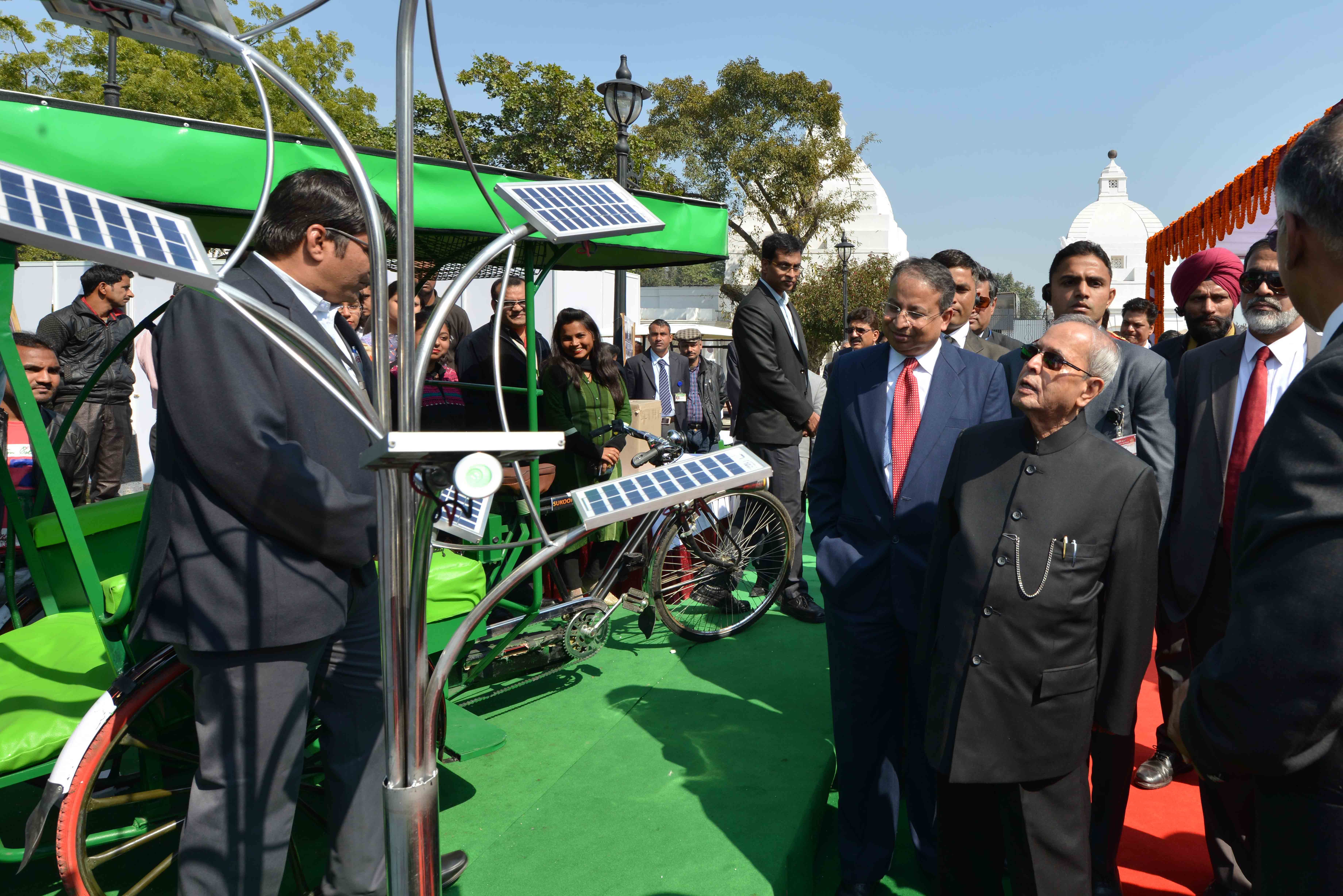 The President of India, Shri Pranab Mukherjee visiting the Exhibition on Green Energy at the inauguration of Solar Power Projects, at Rashtrapati Bhavan Museum Complex on February 10, 2017.
