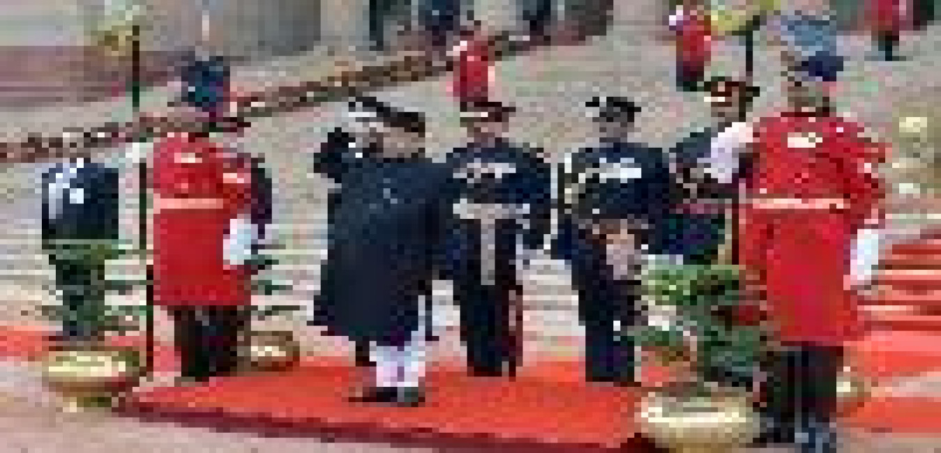 The President of India, Shri Pranab Mukherjee receiving Salute at Parliament House ahead his address to the members of both Houses of Parliament, in New Delhi on January 31, 2017.