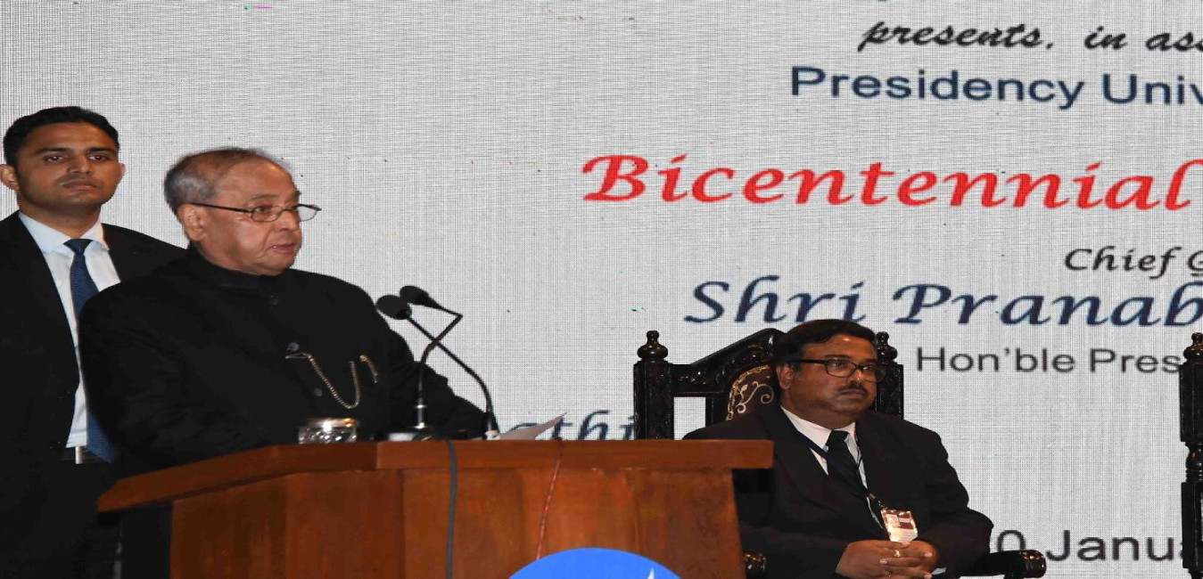 The President of India, Shri Pranab Mukherjee addressing at the inauguration of Bicentenary celebrations of Presidency University, at Kolkata, in West Bengal on January 20, 2017.