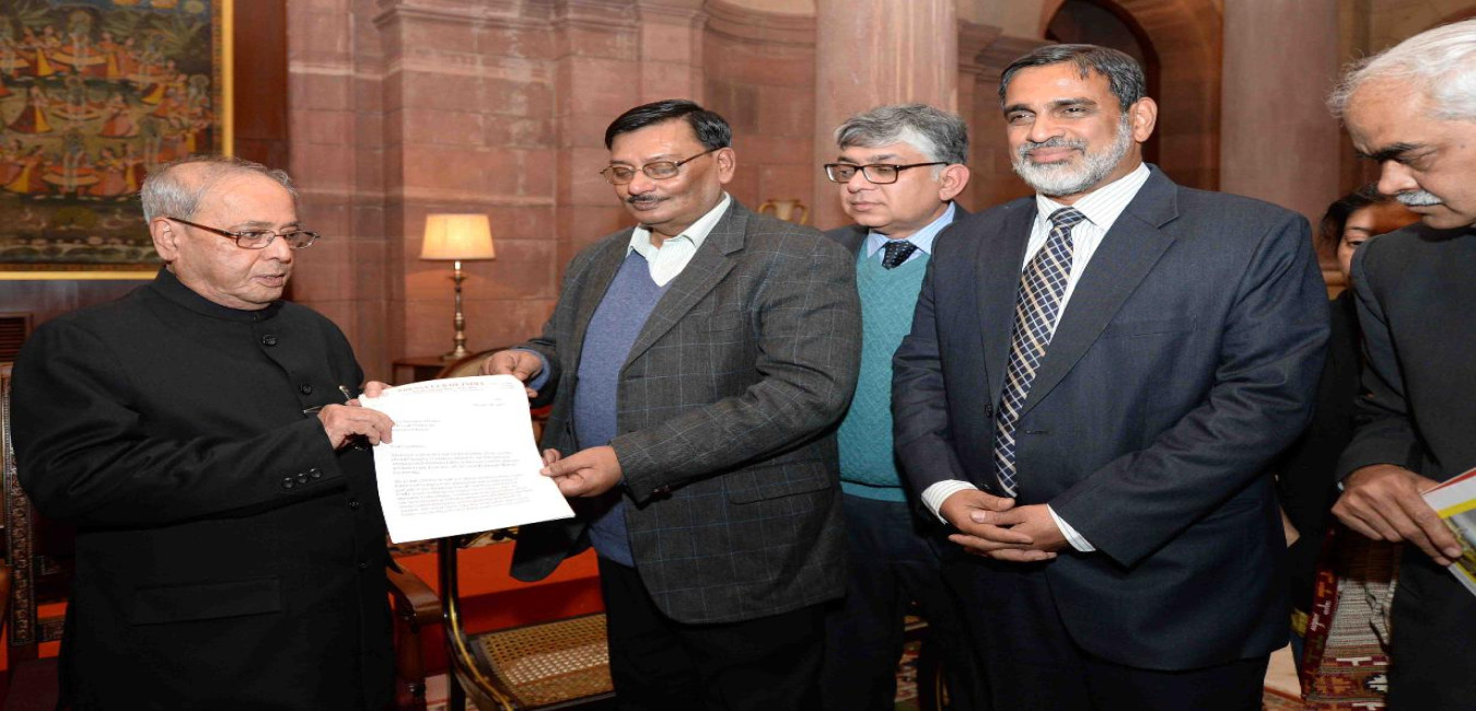 The President of India, Shri Pranab Mukherjee meeting with Shri Shashi Kant Sharma, Comptroller & Auditor General of India, at Rashtrapati Bhavan on January 17, 2017.
