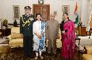 The President of India, Shri Pranab Mukherjee meeting with Lt. Gen. S.D. Duhan, VSM, PHS, Commandant, R&R Hospital alongwith his wife Smt. Krishna Duhan, at Rashtrapati Bhavan on January 17, 2017.