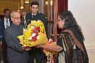 The President of India, Shri Pranab Mukherjee meeting with Dr. Kiran Bedi, Lt. Governor of Puducherry, at Rashtrapati Bhavan on January 04, 2017.