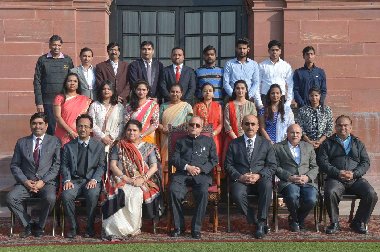 The President of India, Shri Pranab Mukherjee meeting with Shri Mohd. Irshad Ahmad, President with others from Aligarh Muslim University Old Boys Association, at Rashtrapati Bhavan on December 17, 2016.