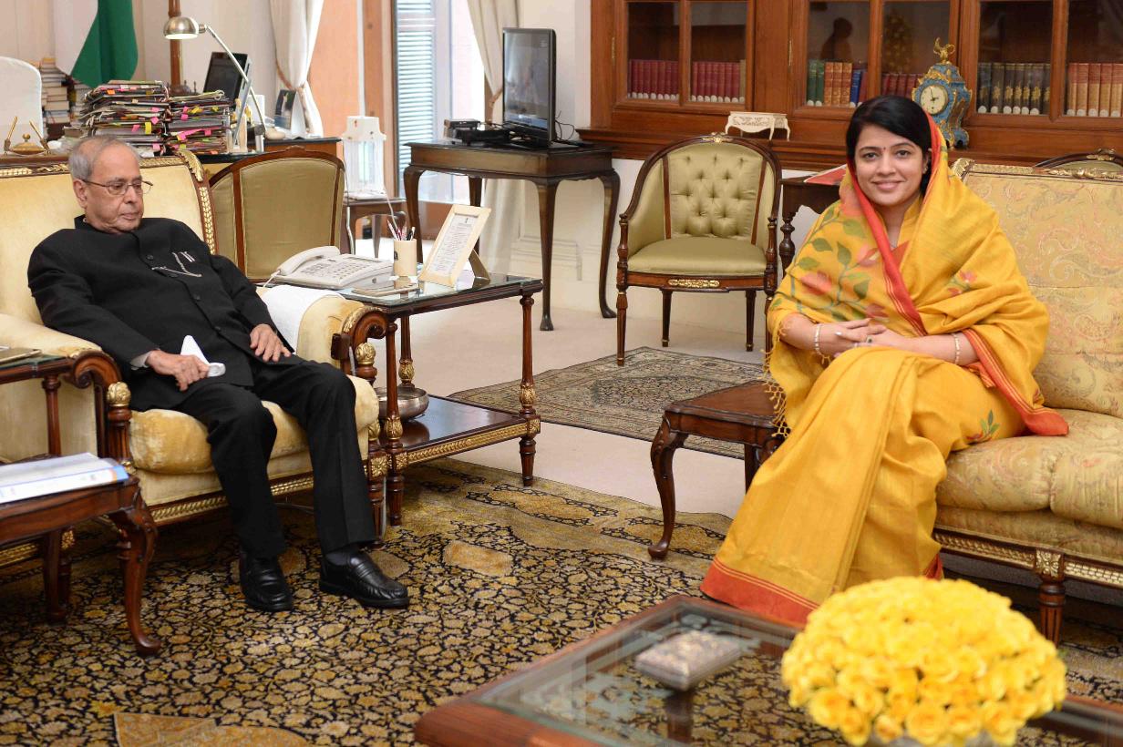 The President of India, Shri Pranab Mukherjee meeting with Ms. Kanika Chakravarty, at Rashtrapati Bhavan on December 19, 2016.