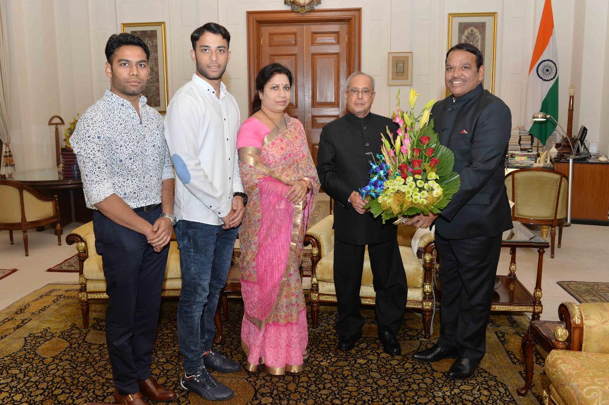 The President of India, Shri Pranab Mukherjee meeting with Shri Shrirang Appa Barne, MP (LS) alongwith his wife and sons, at Rashtrapati Bhavan on December 01, 2016.