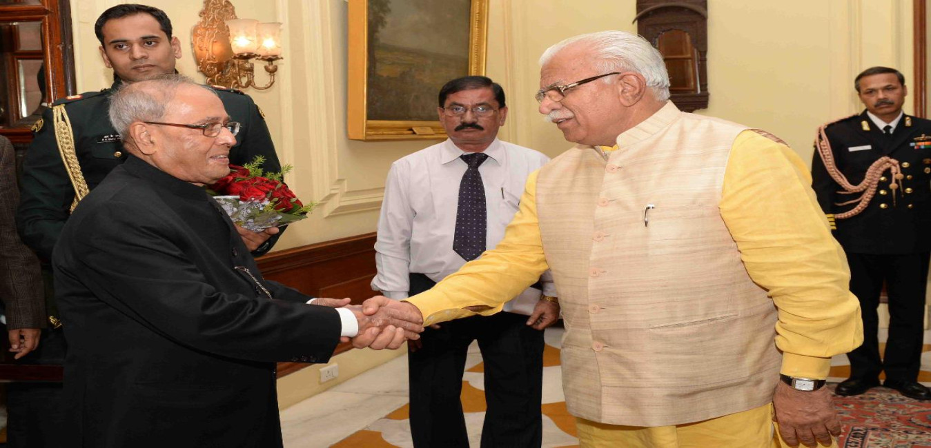 The President of India, Shri Pranab Mukherjee meeting with an all political parties delegation led by Shri Manohar Lal, Chief Minister of Haryana, at Rashtrapati Bhavan on November 28, 2016.