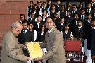 The President of India, Shri Pranab Mukherjee receiving a book on the International Court of Justice, The Hague from Dr. Justice Dalveer Bhandari, Judge, International Court of Justice and former Judge of Supreme Court of India, at Rashtrapati Bhavan on November 22, 2016.