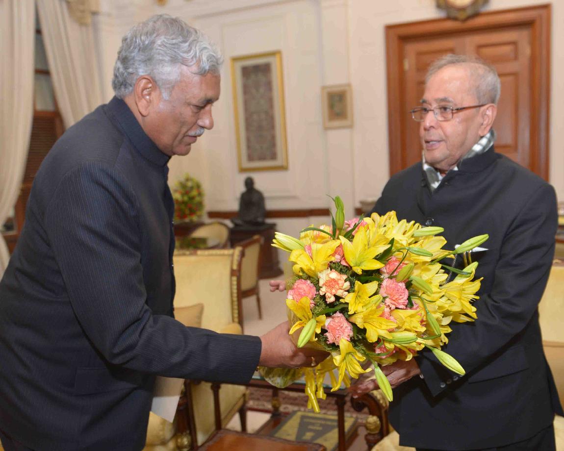 The President of India, Shri Pranab Mukherjee meeting with Dr. Mahesh Sharma, the Minister of State (I/C) for Tourism & Culture, at Rashtrapati Bhavan on November 21, 2016.