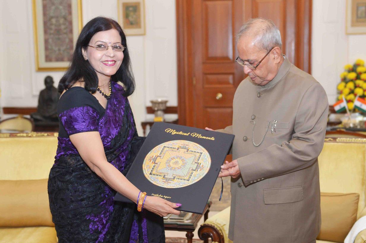 The President of India, Shri Pranab Mukherjee meeting with Smt. Pratiksha Apurv, Artist, at Rashtrapati Bhavan on November 21, 2016.