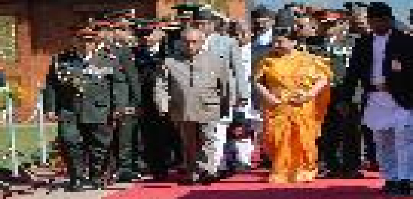 The President of India, Shri Pranab Mukherjee being received by the President of Nepal, H.E. Ms. Bidya Devi Bhandari on his arrival, at Tribhuvan International Airport, in Kathmandu, Nepal on November 02, 2016.