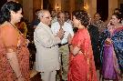 The President of India, Shri Pranab Mukherjee meeting with Ms. Sushmita Dev, MP (LS) with others from Barak Upatya Banga Sahitya O Sanskriti Sammelan, Assam, at Rashtrapati Bhavan on October 26, 2016.