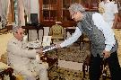 The President of India, Shri Pranab Mukherjee meeting with Shri Jawed Ashraf, High Commissioner designate of India to Singapore, at Rashtrapati Bhavan on October 19, 2016.