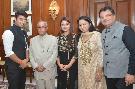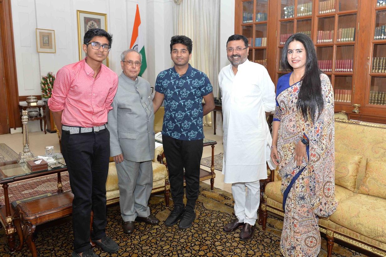 The President of India, Shri Pranab Mukherjee meeting with Smt. & Shri Nishikant Dubey, MP (LS) alongwith their sons Shri Kanishkkant and Shri Maahinkant, at Rashtrapati Bhavan on July 06, 2017.