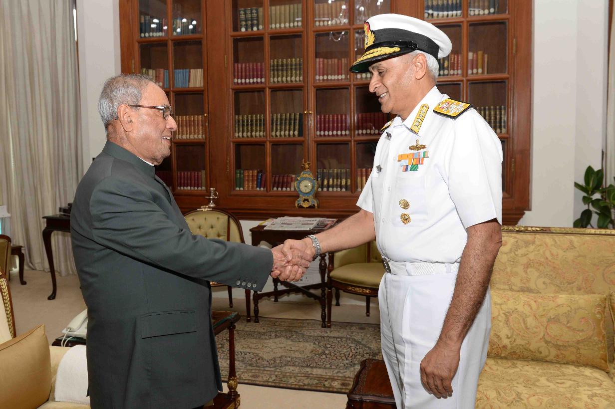 The President of India, Shri Pranab Mukherjee meeting with Admiral Sunil Lanba, Chief of the Naval Staff & Chairman, Chiefs of Staff Committee, at Rashtrapati Bhavan on July 04, 2017.