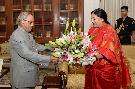 The President of India, Shri Pranab Mukherjee meeting with Prof. Sunaina Singh, Vice Chancellor, Nalanda University, at Rashtrapati Bhavan on July 06, 2017.