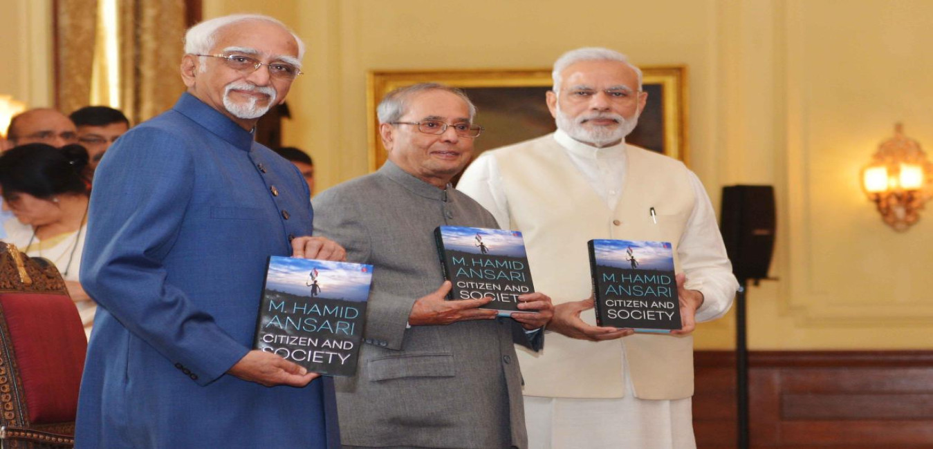 The President of India, Shri Pranab Mukherjee releasing the book 'Citizen and Society' authored by the Vice President of India, Shri Mohd. Hamid Ansari, at Rashtrapati Bhavan on September 23, 2016.