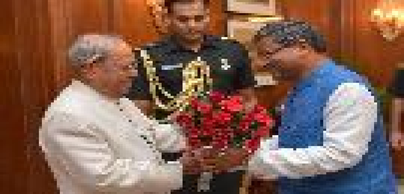 The President of India, Shri Pranab Mukherjee meeting with Shri Babulal Marandi, Ex-Chief Minister of Jharkhand alongwith representatives of Tribal Welfare Societies of Jharkhand, at Rashtrapati Bhavan on September 22, 2016.